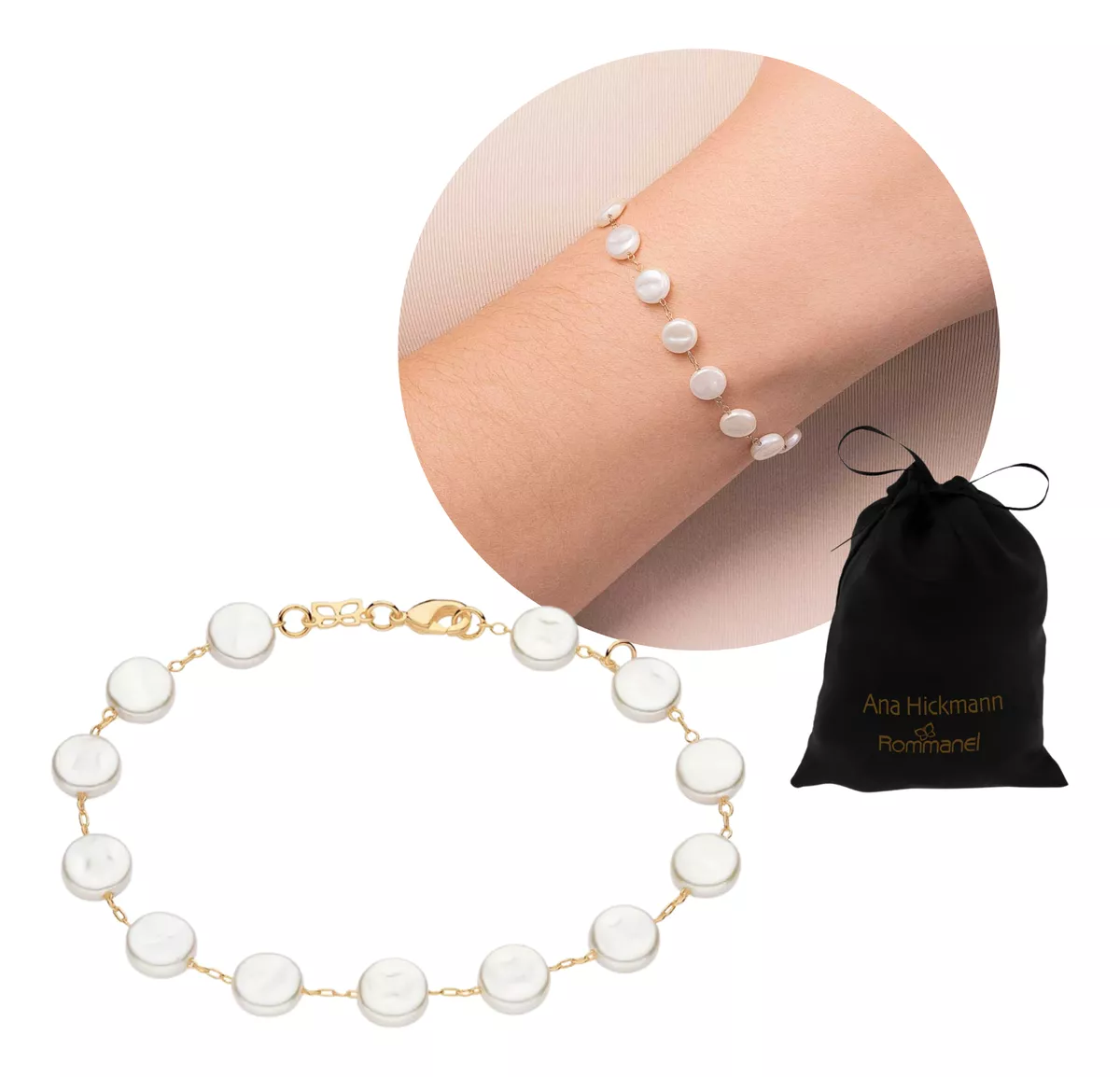 Esta elegante pulseira é composta por 13 pérolas barrocas sintéticas, medindo 8,40 mm x 3,60 mm, e tem um comprimento de 20 cm, ajustável a 18 cm. Banho em ouro 18k, é a peça perfeita para adicionar um toque sofisticado ao seu look.